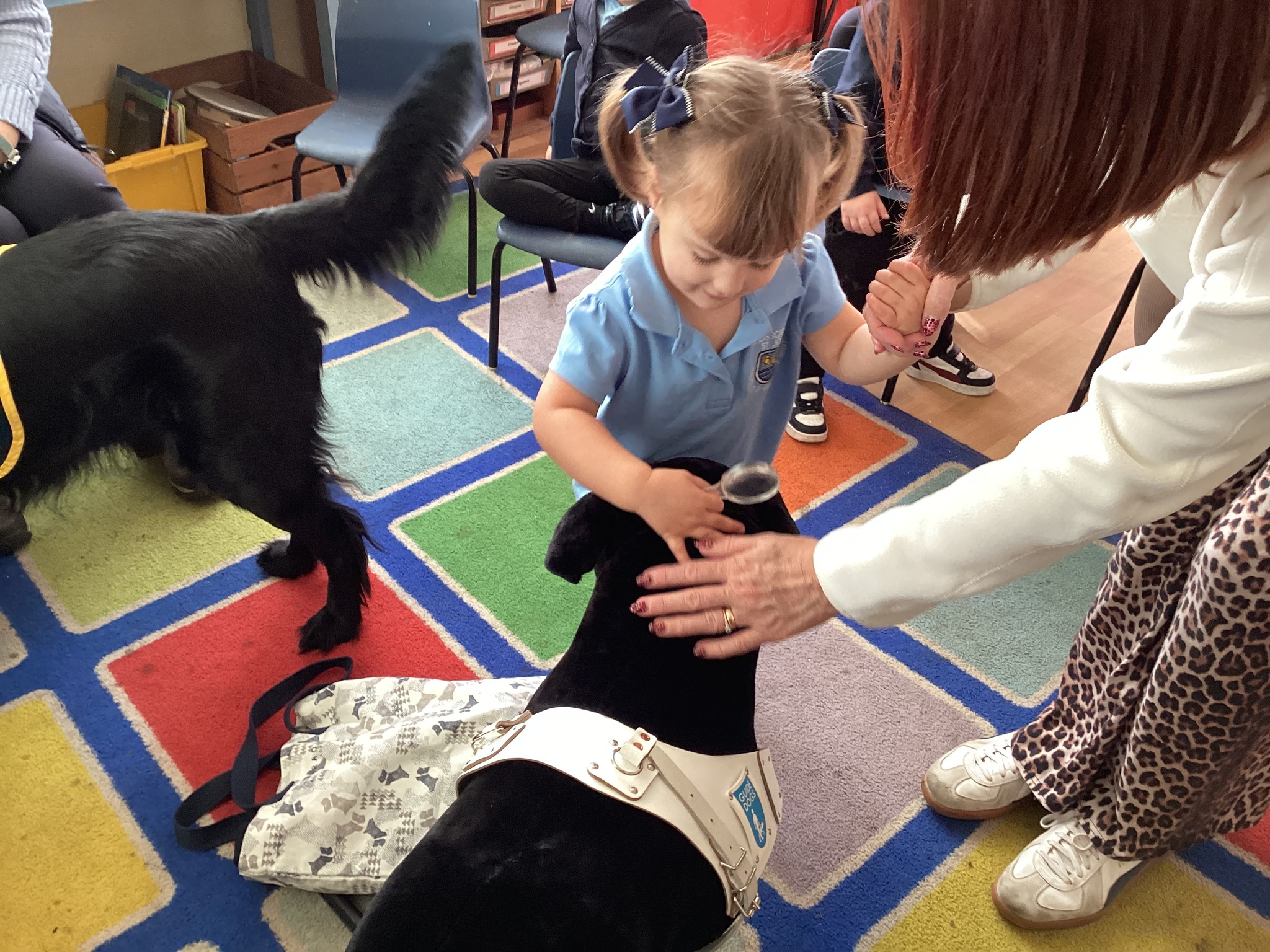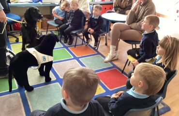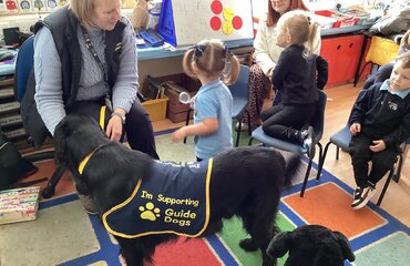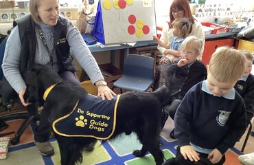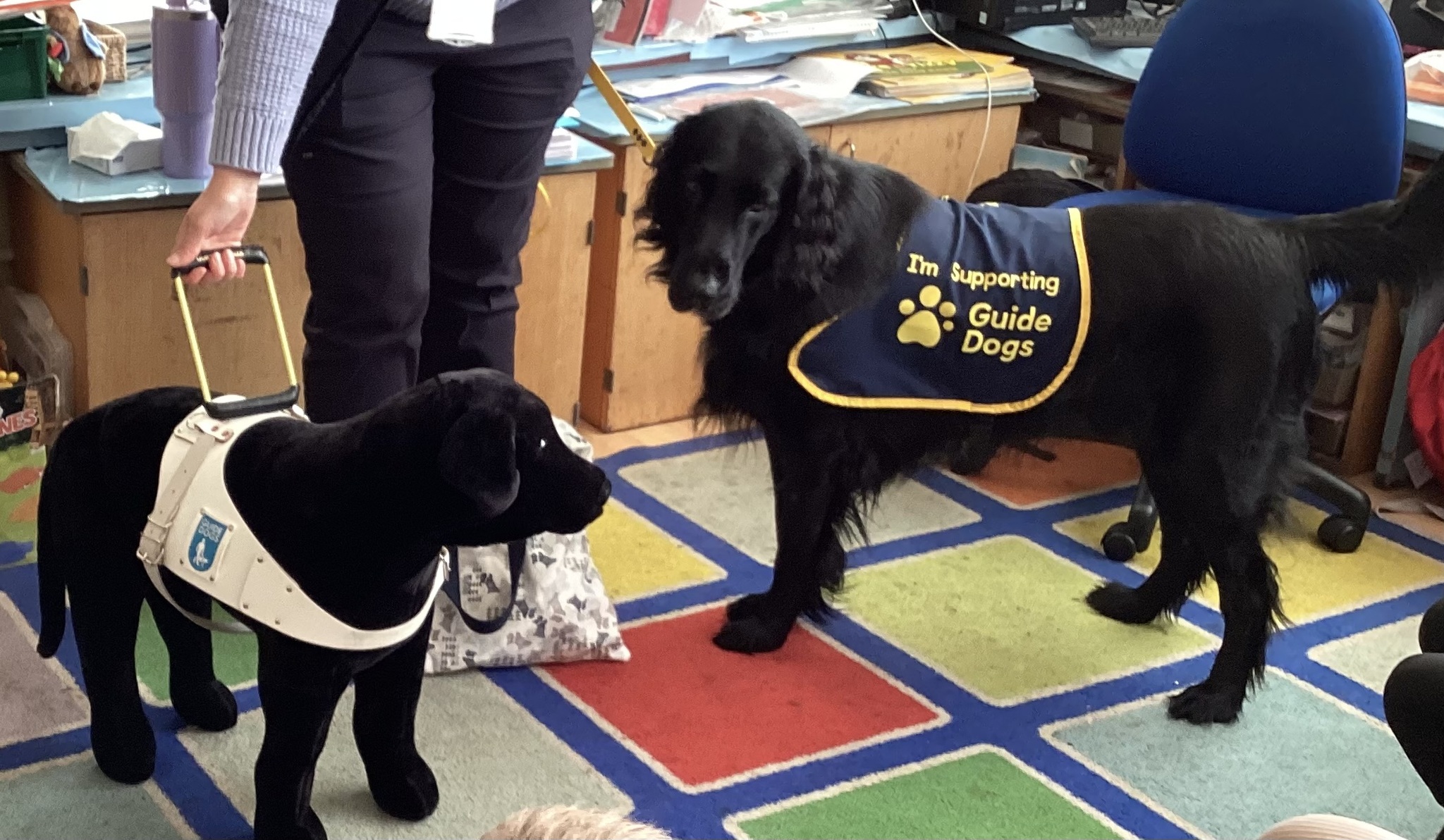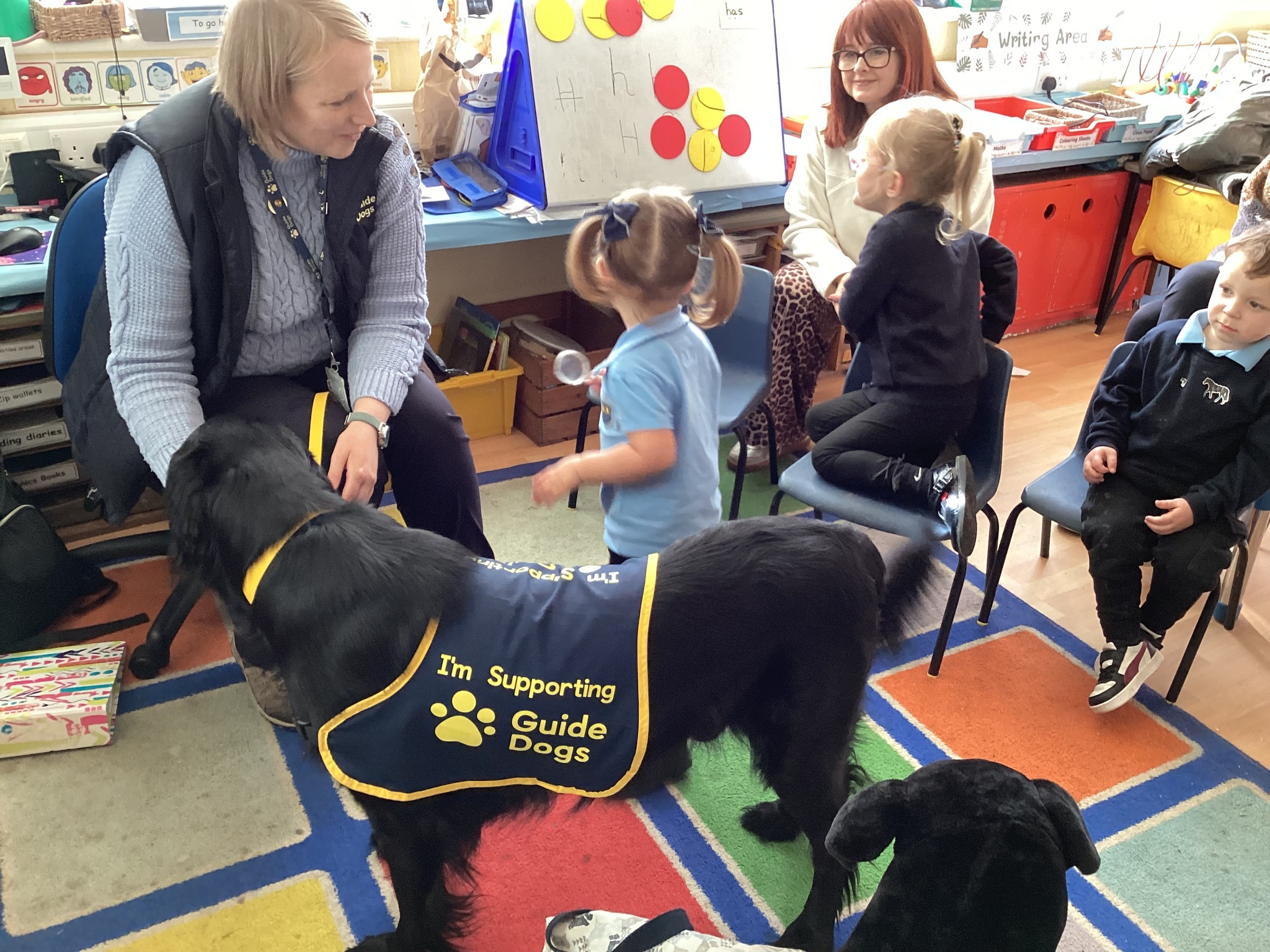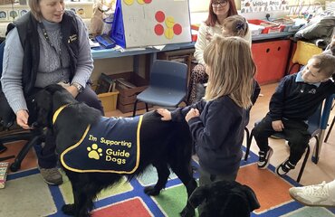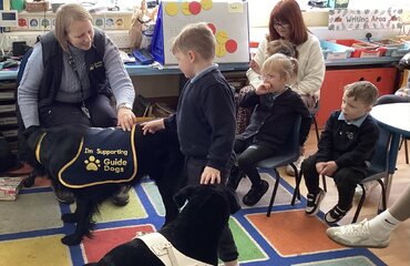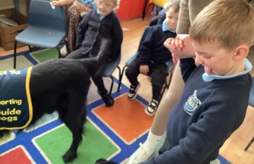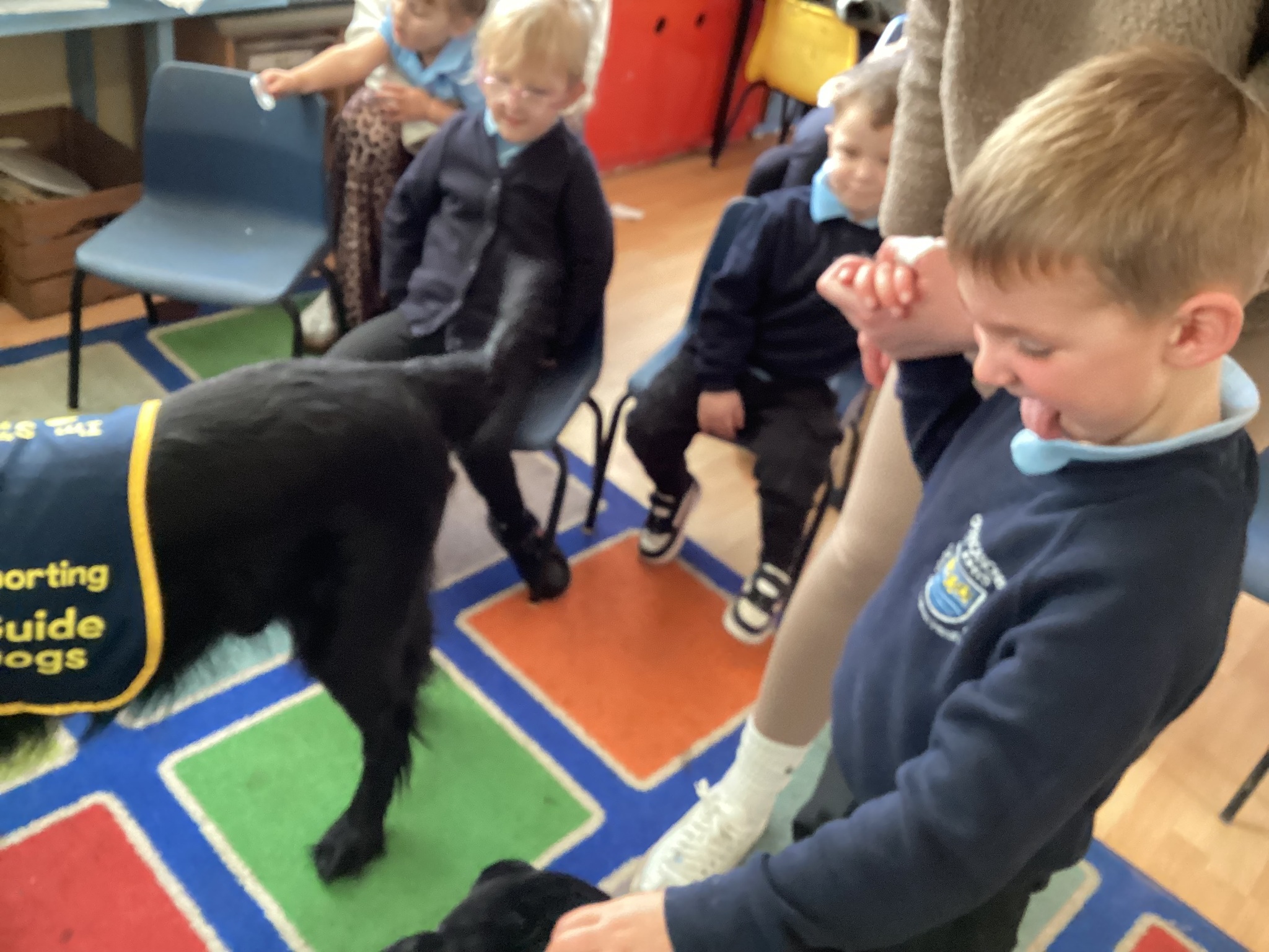 This afternoon we learnt how a guide dogs are trained and how they help their owners .We met Jacob an ambassador dog who is so friendly he failed his guide dog training and comes into school instead.