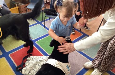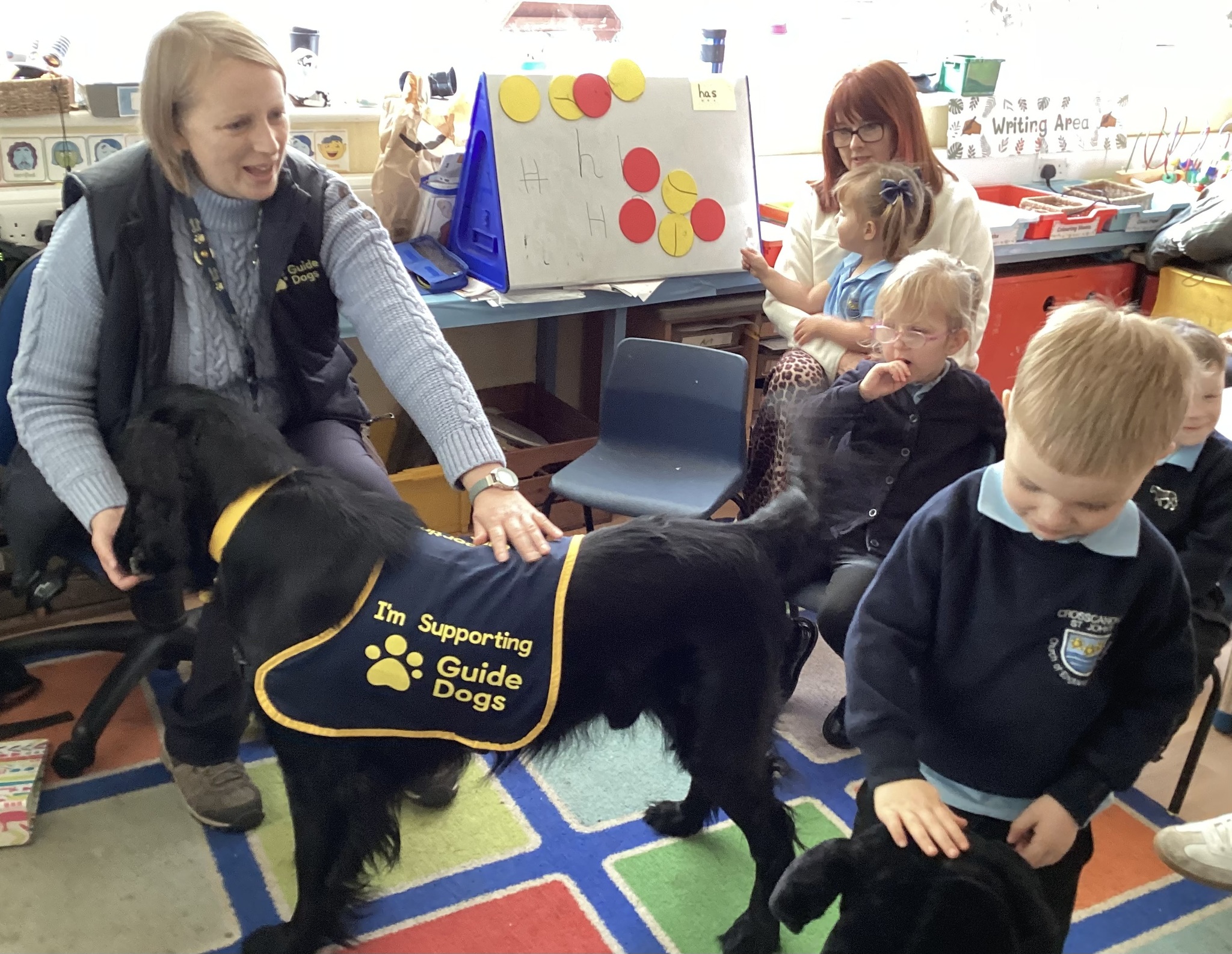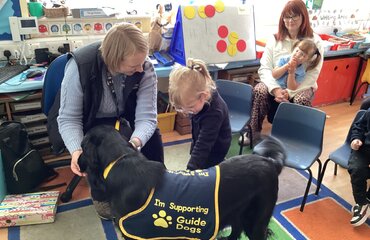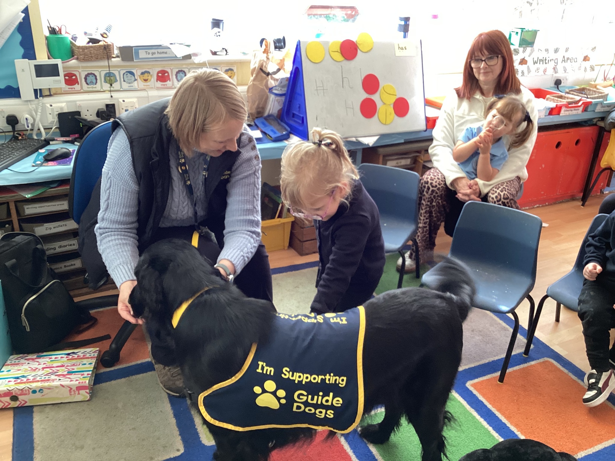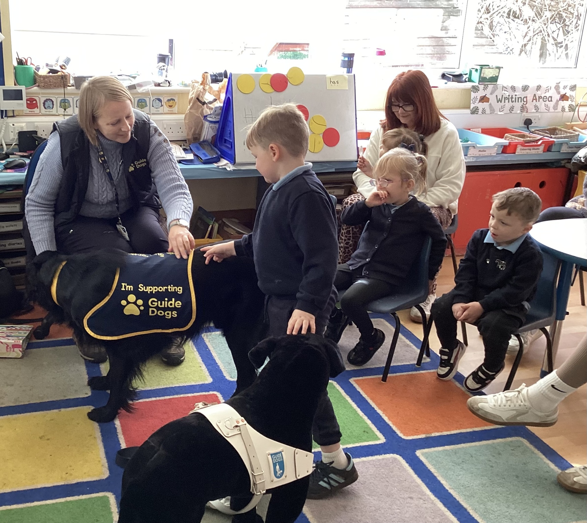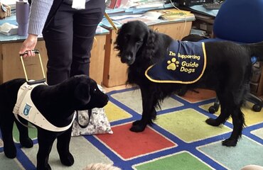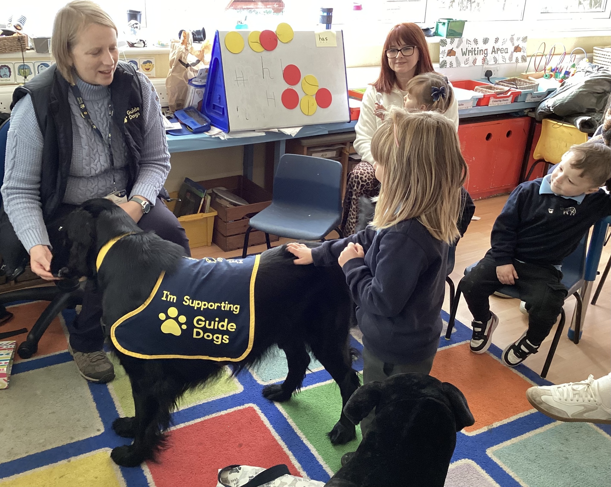 This afternoon we learnt how a guide dogs are trained and how they help their owners .We met Jacob an ambassador dog who is so friendly he failed his guide dog training and comes into school instead.